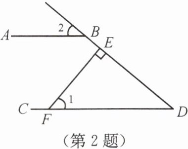 2.【鄂州】如图所示,AB//CD,EF⊥BD,垂足为E,∠1= 50°,则∠2的度数为( )
