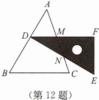 12.如图所示,将一把含30°角的直角三角尺DEF放置在△ABC上,30°角的顶点D在边AB上,且DE⊥AB,若∠A= 50°,BC//DF,则∠DNM= ______。