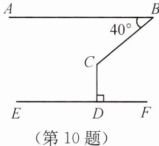 10.【十堰】如图所示,AB//EF,CD⊥EF于点D,若∠ABC= 40°,则∠BCD的度数为( )