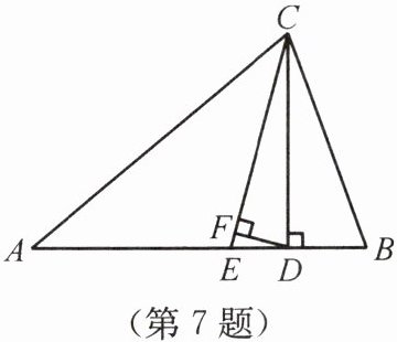 7. 如图所示,在△ABC中,∠A= 40°,∠B= 70°,CE平分∠ACB,CD⊥AB于点D,DF⊥CE于点F,则∠CDF= ______。