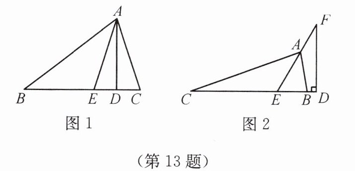 (3)小亮突发奇想,交换B,C两个字母的位置,如图2所示,过EA的延长线上一点F作FD⊥BC交CB的延长线于点D,当∠B= 80°,∠C= 20°时,∠F的度数为______。