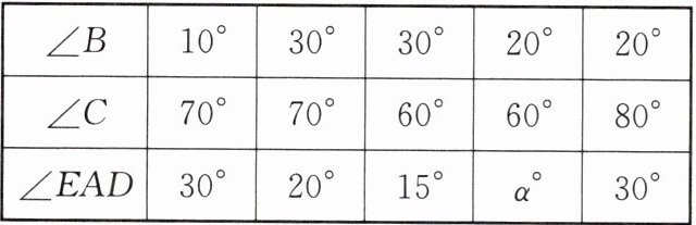 (1)小亮阅读题目后,没有发现数量关系与解题思路。于是尝试代入∠B,∠C的值求∠EAD值,得到下面几组对应值: