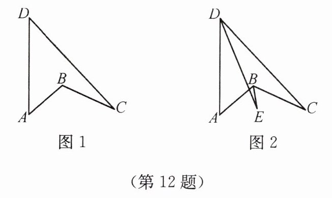 12. (1)如图1所示,求证:∠ABC= ∠A+∠C+∠ADC。