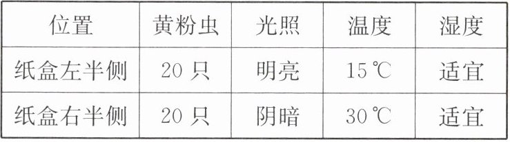 C.纸盒左、右两侧黄粉虫的数量可以不同