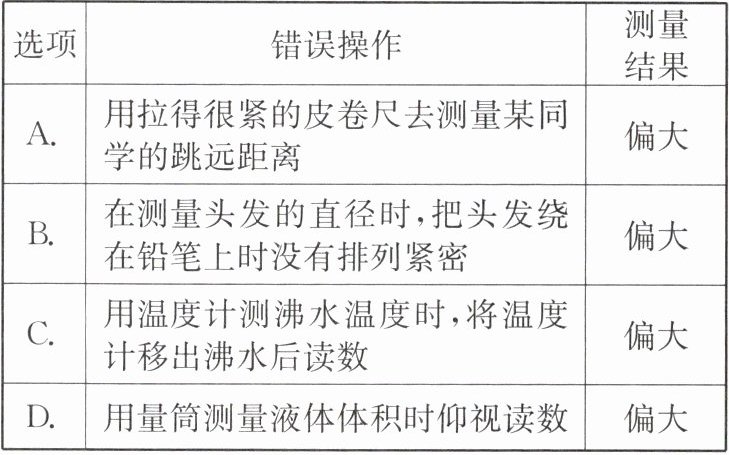7. 对知识进行归纳总结是一种很好的学习方法。下列是小科整理的错误操作与对应的测量结果,其中正确的是 ( )