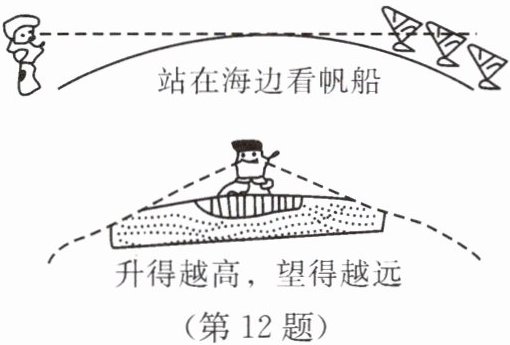 C [解析]“欲穷千里目,更上一层楼”不仅反映了站得高,阻碍视线的高耸物就越少,还反映了“地球是个球体”。若地面是平面,则高处和低处都能看到最远处(如图甲所示);若地面是曲面,则高处能看得更远(如图乙所示)。