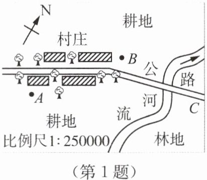1. 如图所示为某村的地图,请据图回答下列问题: