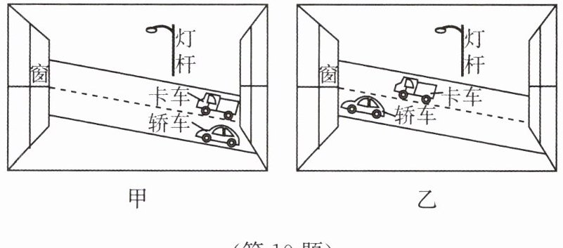 10.【温州】小明家附近有条公路。他看到窗外的情景由如图甲所示变为如图乙所示,于是判断轿车是运动的。他选择的参照物不可能是 ( )