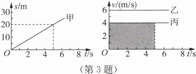 3. 甲、乙、丙三辆小车同时、同地向东运动,它们运动的图像如图所示,由图像可知,下列说法中,错误的是( )