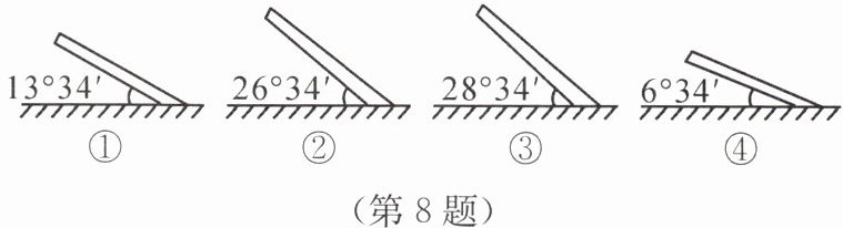 8. 如图所示为北半球四个地点在6月22日不同时刻测得的当地太阳位于正南方向时的太阳能热水器倾角示意图。该日四个地点中正午太阳高度由大到小的顺序是( )