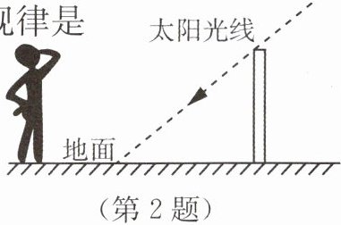 2. 【衡阳】贝贝在衡阳某地进行了“立竿见影”的探究活动。如图所示,从日出到正午,竹竿影子长度的变化规律是( )