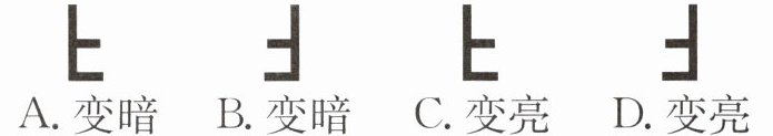 A [解析]小孔成像是光沿直线传播形成的现象,通过小孔所成的是一个倒立的实像,“F”发光物和小孔位置不变,向右移动光屏,像到小孔的距离变大,所以亮度变暗。