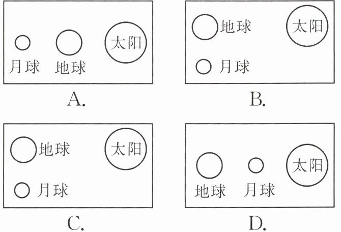 4. 下列三个星球间的位置关系中,可能产生月食的是 ( )