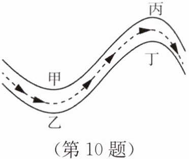 10. 如图所示为汽车拉力赛道的局部路段,为了保障车手的安全,赛道的某些位置需要加设防护设施,图中最需要加设防护设施的地方是 ( )