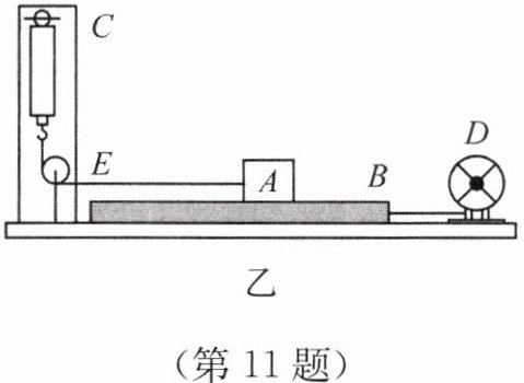 11. 如图甲所示,A是木块,B是长木板,C是弹簧测力计,另有砝码、棉布、毛巾等实验器材。若匀速拉动弹簧测力计,则可测出木块受到的摩擦力。