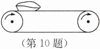 10. 如图所示,将一袋大米放在匀速向右水平运动的传送带上,初始米袋与传送带间有一段距离的相对滑动,然后米袋随传送带一起匀速运动。当传送带突然制动时,米袋会继续向前滑动一段距离后停下。请回答下列问题(填字母):