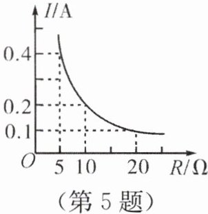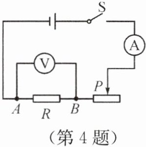 4. 如图所示为“探究电流与电阻的关系”的电路图,将5Ω的定值电阻接入图中A、B两点间,正确操作后,电流表的示数为0.4A。接下来的操作是:断开开关,将5Ω的定值电阻更换为10Ω的定值电阻,再将滑动变阻器的滑片P移到最______(填“左”或“右”)端,然后闭合开关,移动滑片P,使电压表的示数为______V时,读出电流表的示数。