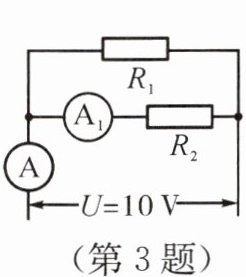 3. 如图所示$,R_1= 10Ω,$电流表$A_1$示数为0.5A,电源电压为10V不变。下列叙述中,正确的是( )