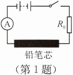 1. 为了探究“铅笔芯的电阻随温度的变化规律”,小明设计了如图所示的电路,电源电压恒定,$R_{0}$为定值电阻。