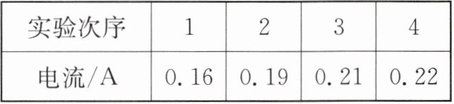 |电流/A|0.16|0.19|0.21|0.22|
