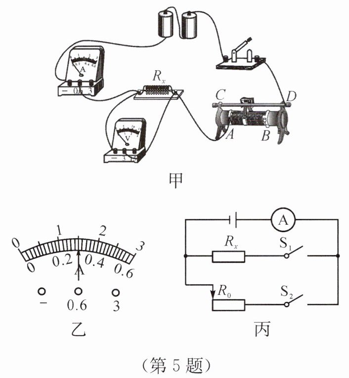 5. 小明利用如图甲所示的电路做“测定值电阻$R_{x}$的阻值”的实验。