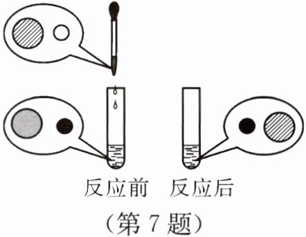 7.【杭州】向氢氧化钠溶液中滴加稀盐酸至恰好完全反应,反应前后溶液中存在的离子种类如图所示(其中“○”“●”“●”“●”表示不同的离子)。下列说法中,正确的是 ( )