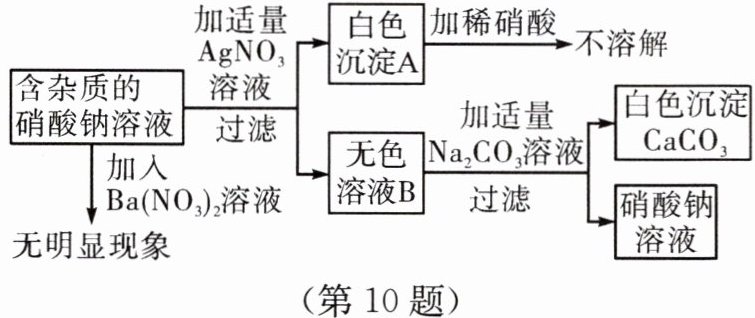 10. 现有含杂质的硝酸钠溶液,为确定其组成,某同学设计了如下实验: