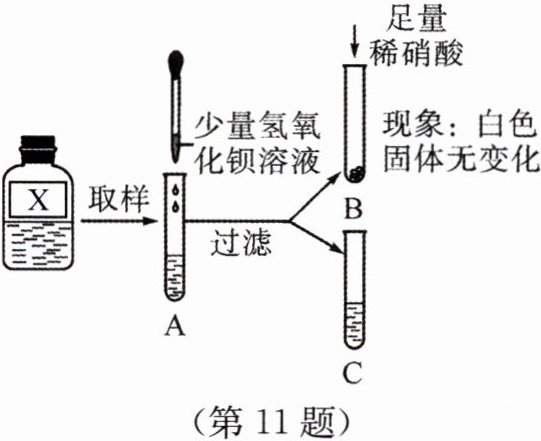 11. 某未知溶液X,其溶质可能是硫酸、碳酸钠、硝酸镁中的一种或两种。为了确定溶质的成分,小乐进行了如图所示的操作。