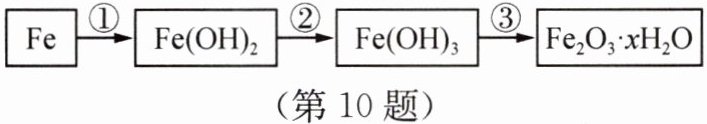 10. 铁在潮湿的空气中易生锈,其反应过程如下: