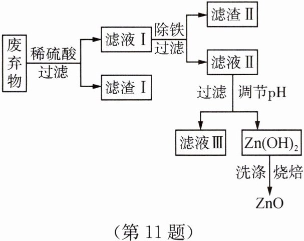 11.【广东】某合金的主要成分为 Zn、Fe、Cu 及这三种金属的少量氧化物。利用该合金制成的机械零件废弃物制取高纯度的 ZnO,其部分工艺流程如图所示。请回答下列问题: