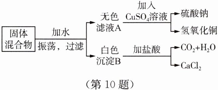 10. 由一种盐和一种碱组成的固体混合物,按下图的步骤进行实验。请回答: