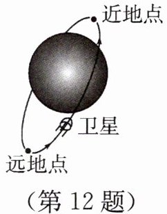 12. 如图所示,人造地球卫星在大气层外沿椭圆轨道环绕地球运行,有近地点和远地点。下列说法中,正确的是 ( )