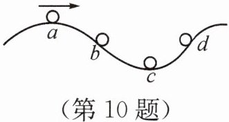 10. 如图所示,小球由静止开始沿着粗糙的路面从a点向d点自由运动,其中b和d两点在同一水平高度,则下列说法中,错误的是 ( )