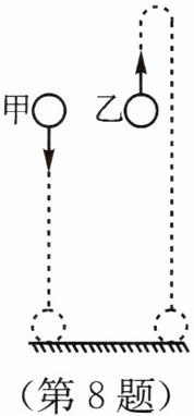 8. 如图所示,甲、乙是两个完全相同的网球。在同一高度以大小相等的速度,将甲球竖直向下抛出,同时将乙球竖直向上抛出,不计空气阻力,则下列说法中,正确的是 ( )