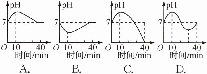 3. 人体口腔内唾液的pH通常约为7,在进食过程的最初10min,酸性逐渐增强,之后酸性逐渐减弱,至40min趋于正常。与上述事实最接近的图像是 ( )