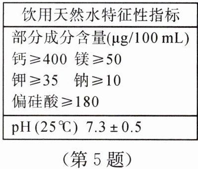 5. 如图所示为一瓶饮用天然水标签的部分内容,下列说法中,正确的是( )