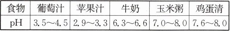 |食物|葡萄汁|苹果汁|牛奶|玉米粥|鸡蛋清|