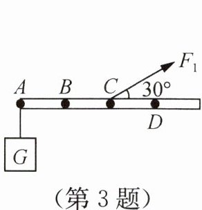 3.如图所示为一轻质硬棒,在 A 点悬挂重物G,在 C 点作用一拉力 F,使硬棒水平平衡,则硬棒的支点可能在( )