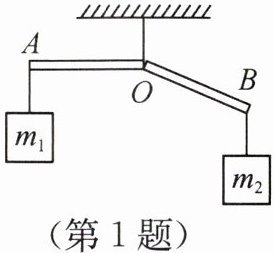$m_{1}$、$m_{2}$的重物时,杠杆平衡,此时 AO恰好处于水平位置,$AO= BO$,不计杠杆重力,则$m_{1}$、$m_{2}$的关系为( )