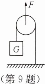 9.如图所示,物重$G= 30N$,绳的一端拴在地面,拉力 F 使滑轮匀速上升。(不计绳重与摩擦)
