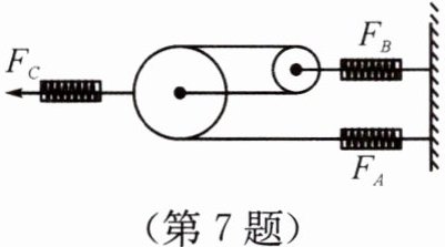 7.【郴州】如图所示,不计滑轮自重及绳子与滑轮之间的摩擦,三个弹簧测力计的示数$F_{A}$、$F_{B}$、$F_{C}$三者的关系,正确的是( )