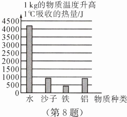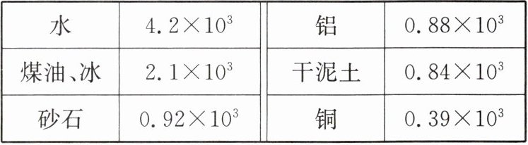 |水|$4.2× 10^{3}$|铝|$0.88× 10^{3}$|