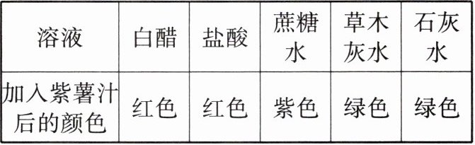 |溶液|白醋|盐酸|蔗糖水|草木灰水|石灰水|