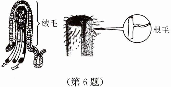 6. 如图所示为人体小肠绒毛和植物根毛结构,下列对两者的比较,正确的是( )