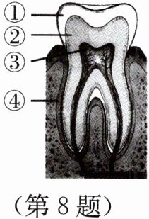 8. 如图所示为牙齿的结构模式图,请据图回答下列问题: