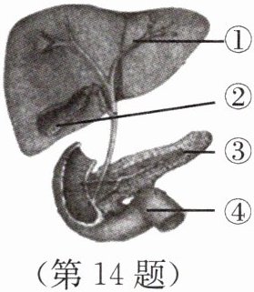 14. 如图所示为人体消化系统部分器官组成示意图,请回答下列问题: