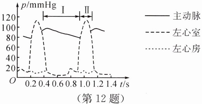 12. 【台州】某哺乳动物的主动脉、左心室及左心房的血压变化如图所示。