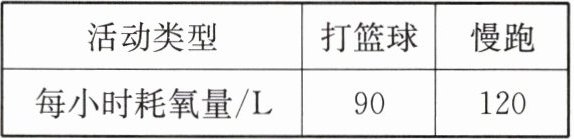 C.打篮球是剧烈运动,耗氧量大,该表测试数据错误