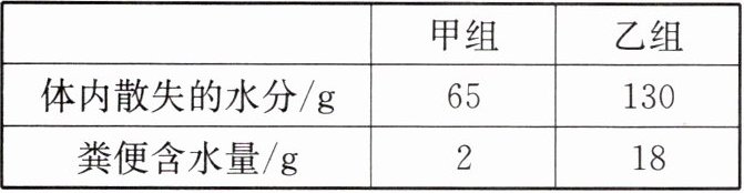 (2)新陈代谢可以获得水;食物中含有一定的水分 乙组 乙组鼠散失的水分和粪便排出的水量比较大,会因缺水而死亡