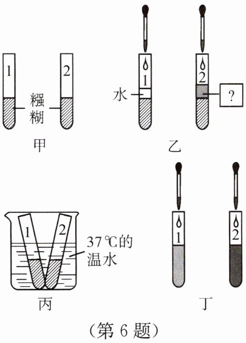 6. 如图所示为唾液淀粉酶对淀粉的消化作用实验过程图,请据图回答下列问题: